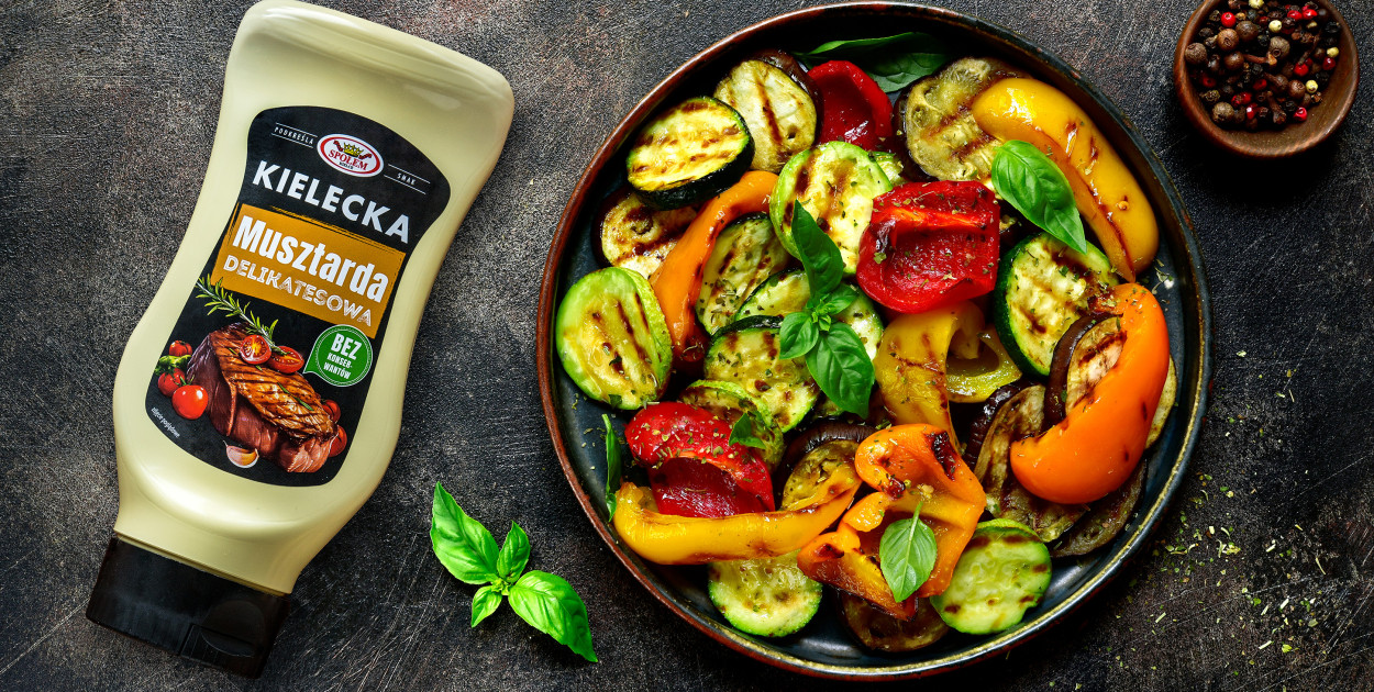 Świetnym daniem na tego typu spotkania będzie sałatka z warzywami prosto z rusztu i musztardowym dressingiem przygotowanym na miejscu. Wystarczy zabrać butelkę Musztardy Kieleckiej Delikatesowej, kilka podstawowych składników i miskę - sos można wymieszać na świeżo, tuż przed podaniem. Taki dodatek pasuje do karkówki, grillowanych kiełbasek, wegetariańskich burgerów czy pieczonych ziemniaków.