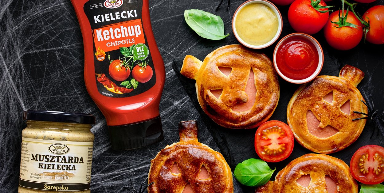 Nie trzeba wiele, by na halloweenowym stole zrobiło się upiornie pysznie. Wystarczy odrobina fantazji i kilka produktów WSP „Społem”. Możemy przygotować jajka „z okiem potwora” - przekrojone na pół jajka na twardo z łyżeczką Majonezu Kieleckiego i plasterkiem oliwki w centrum. Świetnie smakują także mumie z parówek - owinięte paskami ciasta francuskiego, pieczone i podawane z Ketchupem Kieleckim lub Sosem Kieleckim Prażona Cebulka. Niewiele wysiłku wymagają dyniowe tosty, czyli grzanki z puree z dyni, Majonezem Kieleckim Lekkim i kroplą Ketchupu Kieleckiego tworzącą „krwawy” wzór.