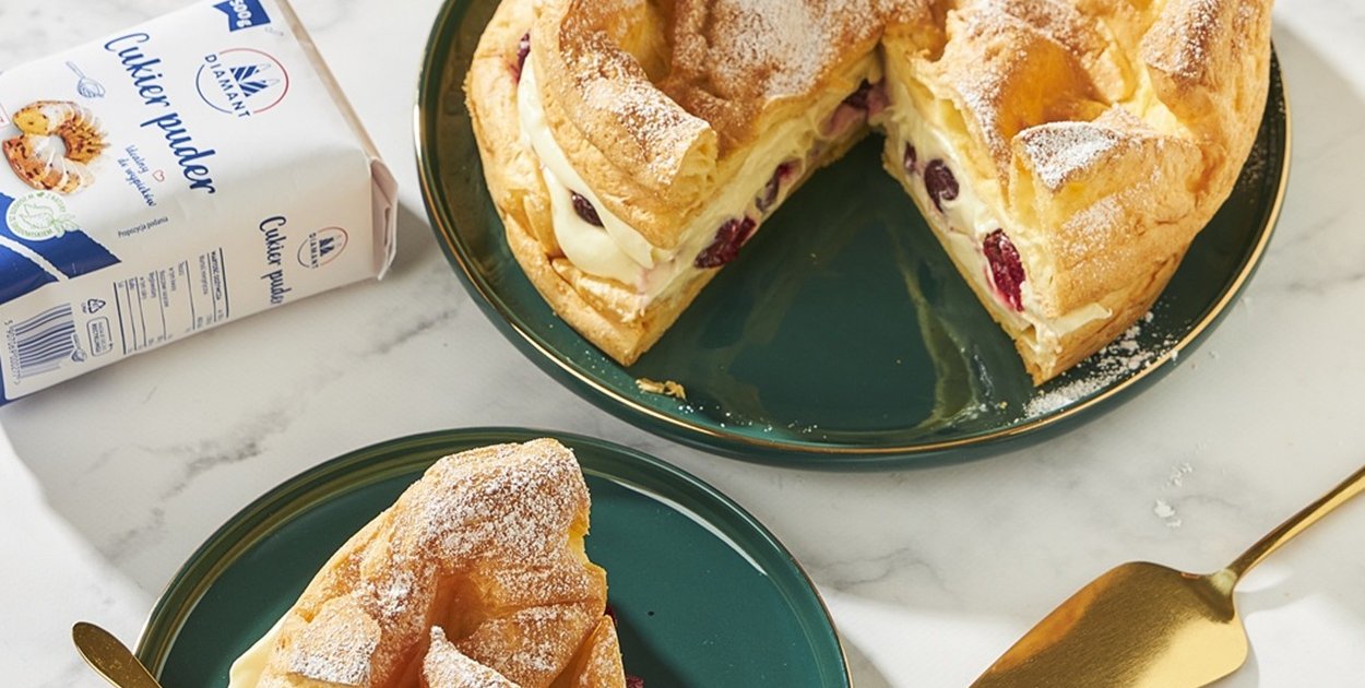 Wiśniowa karpatka łączy puszystą masę budyniową z lekko kwaśnymi wiśniami, tworząc wypiek oparty na smakowym kontraście. Do przygotowania go wykorzystano Cukier Biały DIAMANT, idealnie sprawdzający się w tego typu zestawieniach. Ciasto można podać do czarnej kawy lub mocnej herbaty jako słodki akcent w trakcie zimowego dnia.