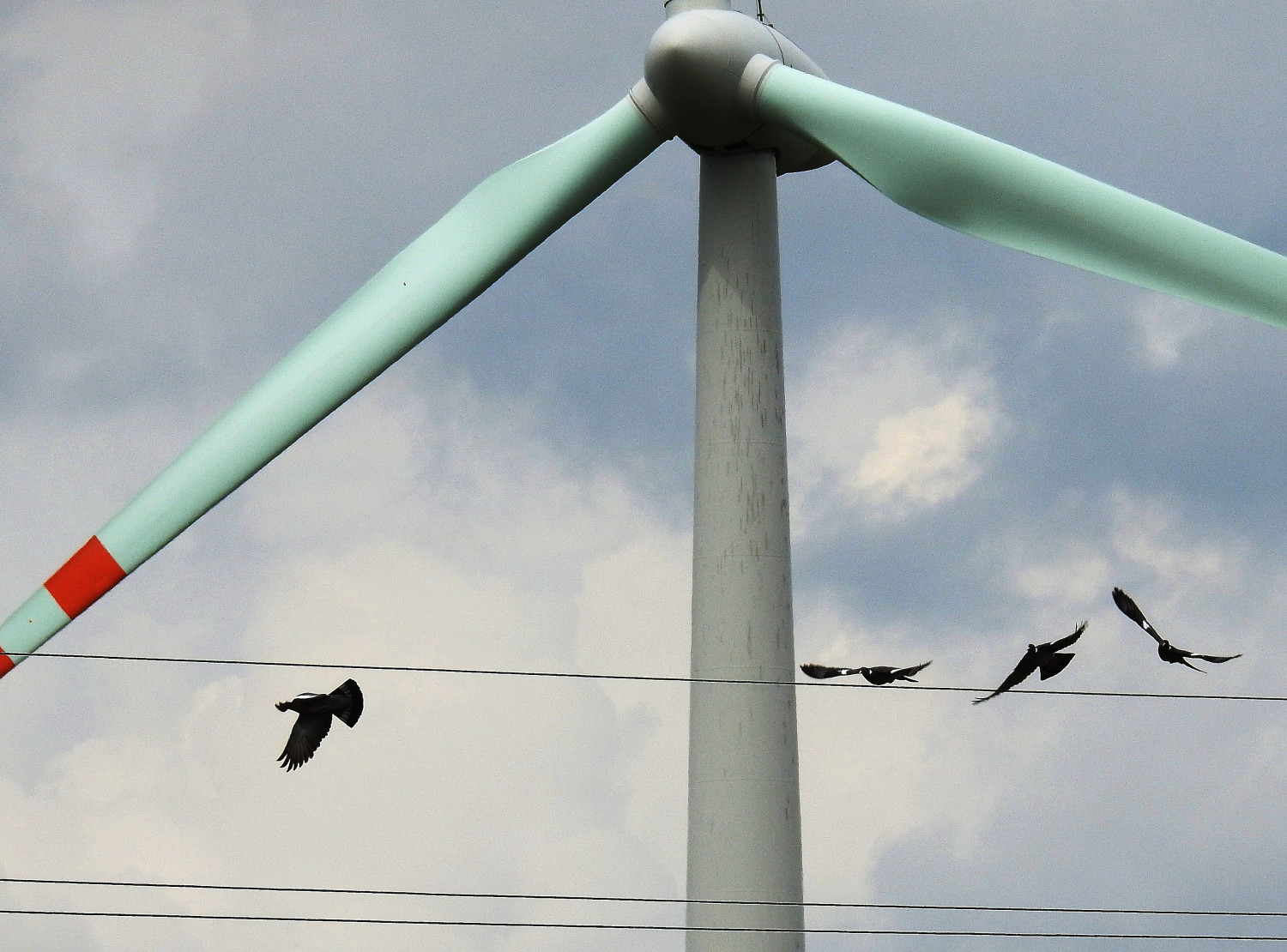 Wiatrak rozbił stado ptaków.