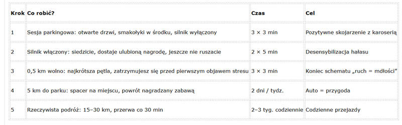 Człowiek potrafi powiedzieć sobie: „Dziesięć minut do marketu”, „Dwie godziny do hotelu”, „Jutro wracamy”. Tworzy w głowie narrację, lęk spada. Pies nie rozumie czasu ani celu. Po 30 sekundach jazdy już nie wie, czy wróci za pięć minut, czy jedzie na zawsze. Brak kontroli = brak poczucia bezpieczeństwa. Efekt: kortyzol skacze o 178% już po uruchomieniu silnika.