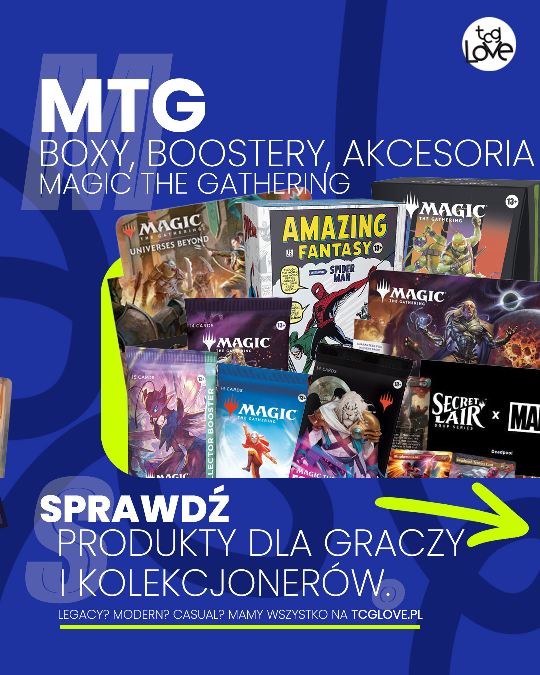 Universes Beyond to linia produktów, dzięki której Magic przenika się ze światami znanymi z innych dzieł: Final Fantasy, Marvel, The Lord of the Rings, Avatar: The Last Airbender i wielu innych. To projekt, który otwiera MTG na zupełnie nowe możliwości narracyjne, łącząc mechanikę gry z mitologią najpopularniejszych franczyz popkultury. Od 2025 roku wszystkie zestawy Universes Beyond stają się legalne w formacie Standard, co jest historyczną zmianą i sygnałem, że Magic coraz mocniej integruje się z kulturą współczesną. Dzięki temu do gry mogą wejść nie tylko wieloletni gracze, lecz także fani konkretnych uniwersów, którzy chcą po raz pierwszy spróbować swoich sił w MTG. W sklepach specjalistycznych, takich jak TCG Love, nowe produkty UB szybko znajdują swoich odbiorców — zarówno kolekcjonerów, jak i graczy, którzy chcą odkrywać Magic poprzez ulubione światy. To właśnie ta różnorodność sprawia, że Universes Beyond staje się jednym z najciekawszych kierunków rozwoju gry.