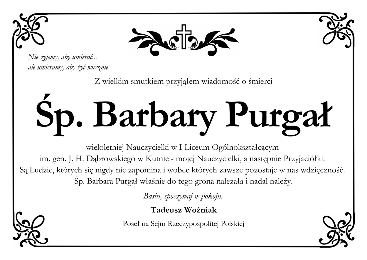 Zmarła Śp. Barbara Purgał nauczycielka z I LO im. gen. J.H Dąbrowskiego w Kutnie
