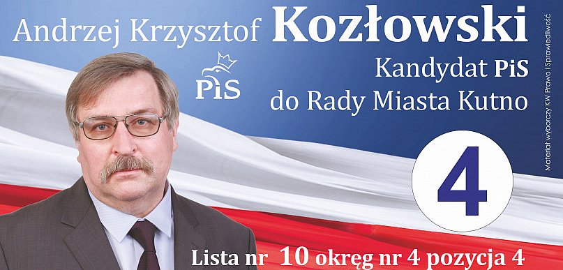 Andrzej Kozłowski jest kandydatem do Rady Miasta Kutna z listy KW Prawo i Sprawiedliwość nr 10 okręg 4 miejsce 4. Od lat działa w życiu społecznym Kutna, jako prezes Klubu Gazety Polskiej Oddziału Kutnowskiego, zabierając głos w ważnych dla miasta i powiatu sprawach, jako organizator spotkań z ciekawymi postaciami życia naukowego i politycznego. To właśnie Andrzej Kozłowski i Klub bardzo skutecznie interweniowali w sprawie nielegalnego pobierania opłat za parkomaty w sobotę.