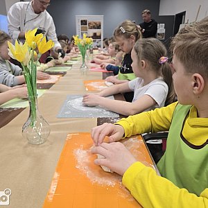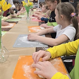 Takie właśnie były chlebki przygotowane przez dzieci – uczestników warsztatów zorganizowanych w Gminnym Centrum Kultury w Czarnocinie. Prowadził je piekarz Łukasz Otręba, który opowiadał dzieciom zarówno o tradycji koszyczków wielkanocnych, jak i o procesie przygotowania prawdziwego chleba na zakwasie. Potem była część praktyczna – dzieci same wyrabiały i ugniatały ciasto i wkładały je do foremek. Była też słodka niespodzianka – gdy bochenki się piekły, uczestnicy warsztatów zajęli się dekorowaniem mini-mazurków. W tej części pomagali im rodzice, więc zajęcia były okazją do kreatywnego spędzenia czasu z mamą lub tatą.