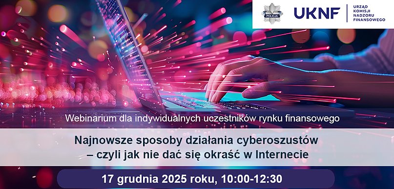 Zapraszamy do udziału w webinarium „Najnowsze sposoby działania cyberoszustów – czyli jak nie dać się okraść w Internecie", które odbędzie się 17 grudnia 2025 roku (10:00-12:30).