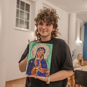 Młodzież powitał ks. Paweł Skonieczny MIC, marianin, którego sercu bliska jest sztuka pisania ikon. Słowami powitania wprowadził zgromadzonych w przestrzeń ducha Bożej miłości. – „Niech Pan w Was pracuje i pomaga. Niech to piękno, które Pan w Was wlał pomoże Wam wyrazić siebie kolorem, przed Nim, przed innymi i przed sobą”. Uczestnicy mieli okazję nie tylko odkryć swoje artystyczne talenty, ale również doświadczyć, jak poprzez malowanie można pogłębiać relację z Bogiem. Jak podkreślała prowadząca warsztaty, Gabrysia Michalak z łódzkiej wspólnoty EFEZ: „Tworzymy przestrzeń dla osób, które chcą wykorzystać dary i umiejętności otrzymane od Boga na Jego chwałę. To, co dostajemy na modlitwie – obrazy, które pojawiają się w naszej wyobraźni, przenosimy na płótno, aby te wizje zostały przypieczętowane”.