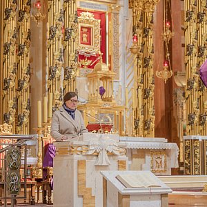Bazylika wypełniła się po brzegi. Atmosfera była głęboko modlitewna, ale jednocześnie niezwykle ciepła i wspólnotowa. Tego dnia szczególnie wybrzmiały słowa o solidarności w cierpieniu oraz o sensie posługi drugiemu człowiekowi. Podczas Mszy Świętej dokonano tradycyjnego poświęcenia baranków wielkanocnych – gestu głęboko zakorzenionego w polskiej tradycji wielkopostnej i przygotowania do Świąt Zmartwychwstania.