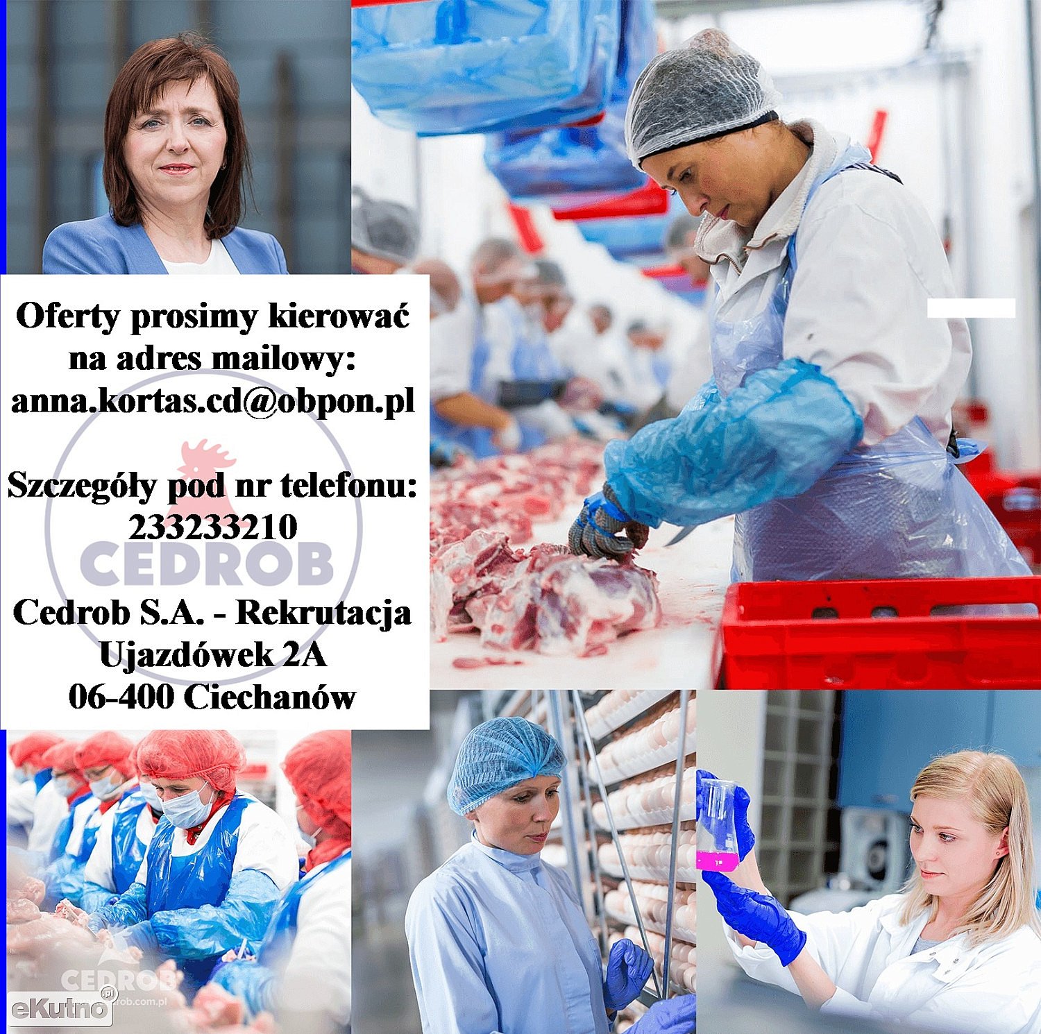 „Wyrażam zgodę na przetwarzanie moich danych osobowych przez CEDROB S.A. z siedzibą w Ujazdówku Ujazdówek 2a, 06-400 Ciechanów, w celu prowadzenia rekrutacji na aplikowane przeze mnie stanowisko”.