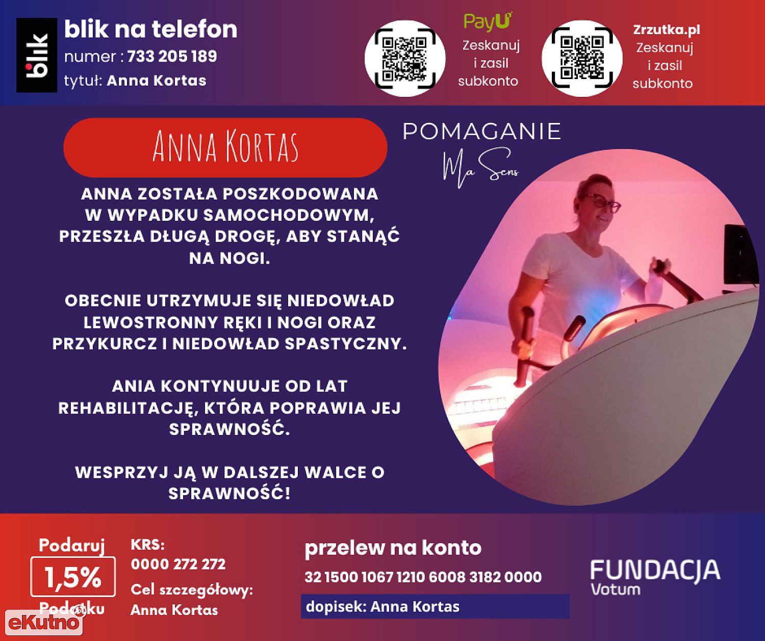 Twoje 1,5% pomoże mi w dalszej rehabilitacji!
