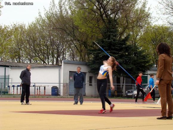 Wczoraj lekkoatleci Uczniowskiego Klubu Sportowego „Dziewiątka” zainaugurowali występy w sezonie 2013 na odkrytym stadionie. Pierwszy tegoroczny start miał miejsce podczas silnie obsadzonego Mityngu Lekkoatletycznego na stadionie łódzkiego AZS-u. Oprócz naszych zawodników startowali na tej imprezie czołowi zawodnicy z kraju (ustanowiono rekord Polski w pchnięciu kulą w kategorii juniorek młodszych) i grupa lekkoatletów z Estonii. Kutnowscy lekkoatleci uzyskali kilka bardzo dobrych rezultatów, zajmując w swych kategoriach wiekowych czołowe miejsca i ustanawiając dużo rekordów życiowych. Najbardziej wartościowe rezultaty uzyskali: - Rafał Ewkowski (junior młodszy) w biegu na 110 m ppł. – 15,65 s (rekord życiowy, drugie miejsce w swojej kategorii wiekowej) - Piotr Kowalski (junior młodszy) w biegu na 110 m ppł. – 15,86 s (rekord życiowy, trzecie miejsce w swojej kategorii wiekowej) - Marcin Kacprzak (junior) w biegu na 300 m – 36,26 s (rekord życiowy, drugie miejsce w swojej kategorii wiekowej) - Natalia Kołodziejczak (młodziczka) w biegu na 100 m ppł. - 15,71 s (rekord życiowy, drugie miejsce w swojej kategorii wiekowej) i w rzucie oszczepem (500 g) - 30, 87 m (pierwsze miejsce w swojej kategorii wiekowej). Inne wartościowe wyniki uzyskane przez naszych zawodników: - Aleksandra Snopkowska (młodziczka) – 17, 80 s w biegu na 100 m ppł. ( 0,01 s gorzej od rekordu życiowego) i 21,56 m w rzucie oszczepem (500 g) – rekord życciowy