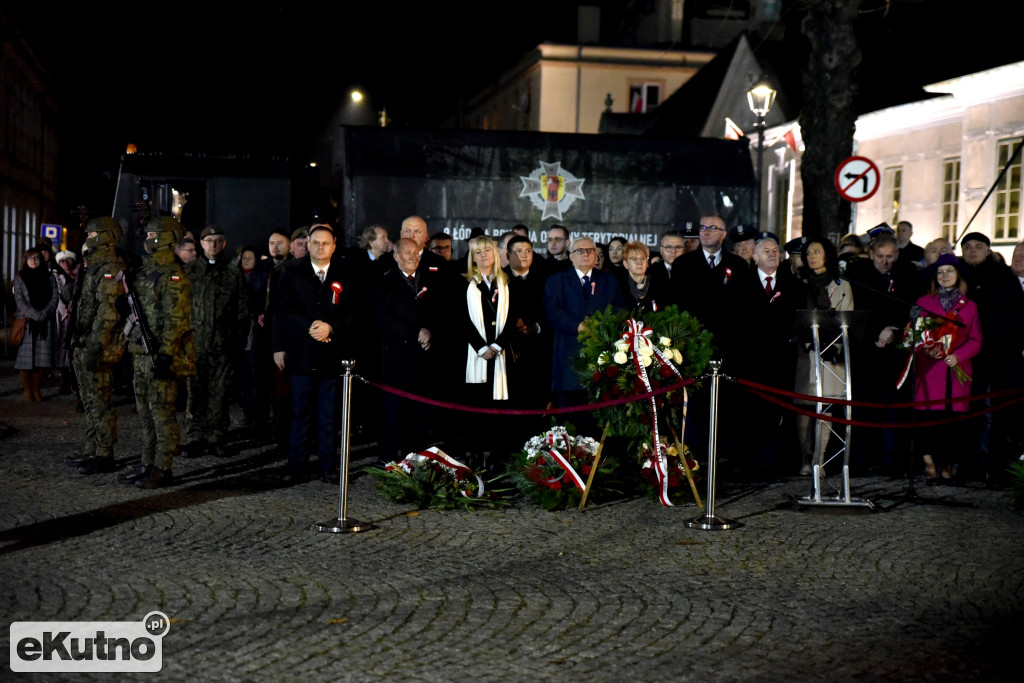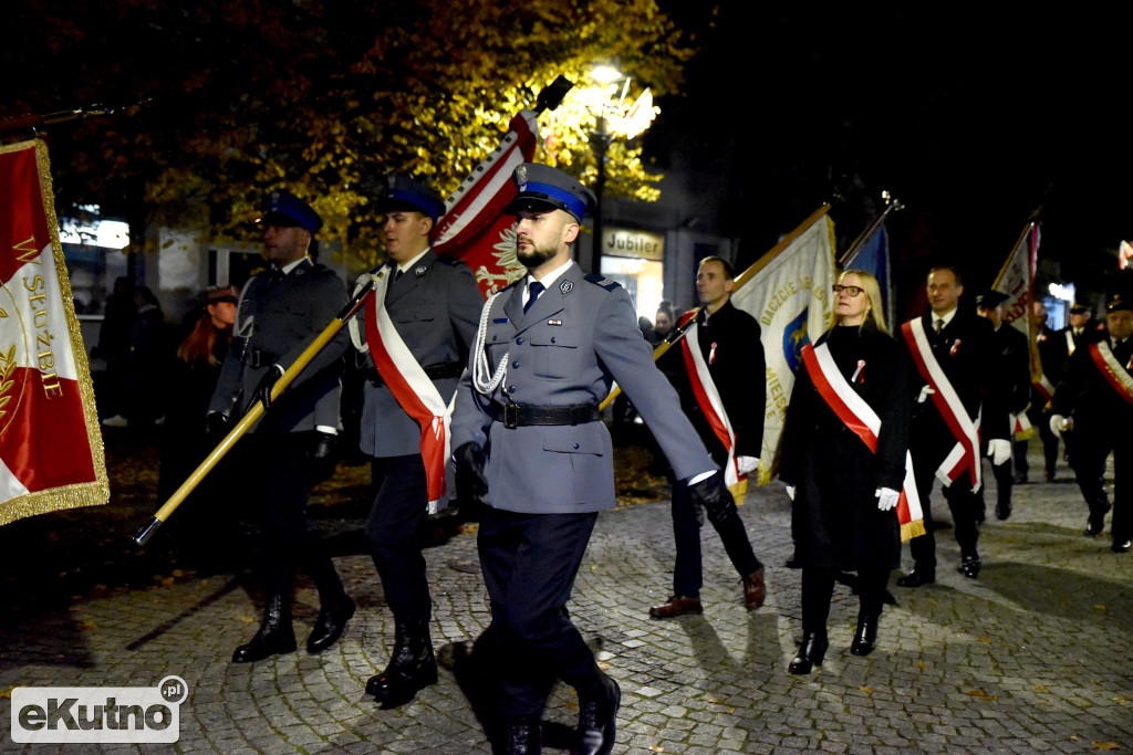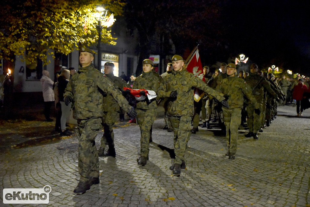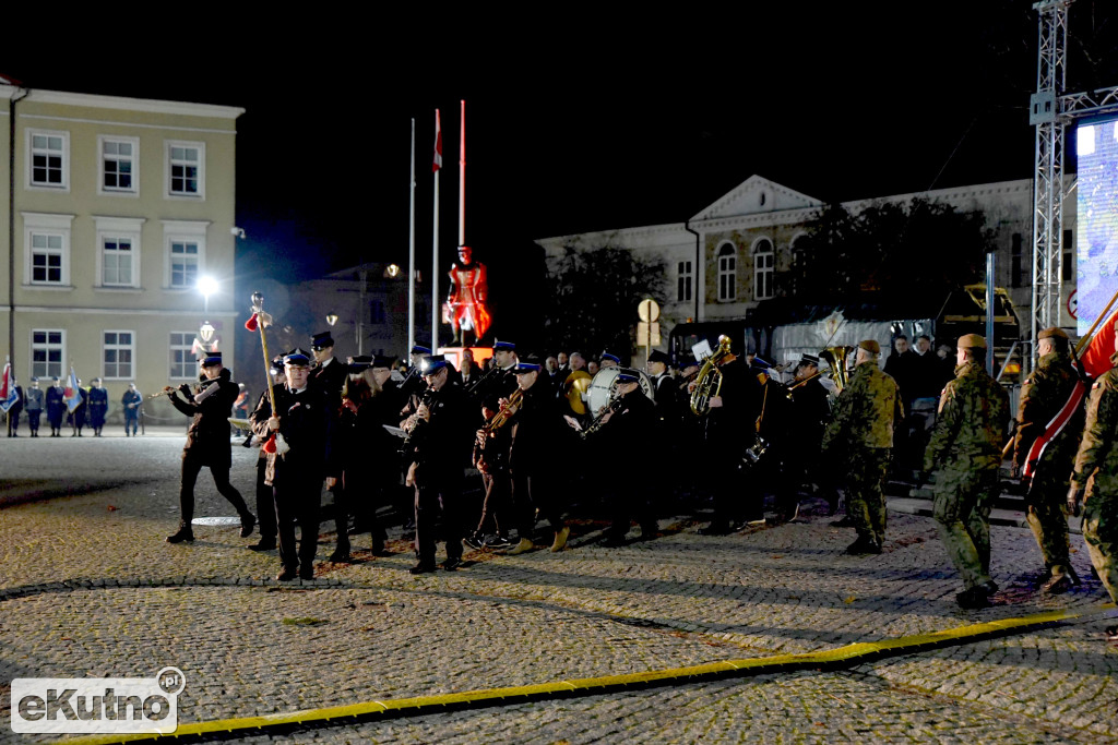 Wieczorne obchody Narodowego Święta Niepodległości przyciągnęły na plac Marszałka Józefa Piłsudskiego liczne grono mieszkańców Kutna i okolic. Złożenie kwiatów przy pomniku Marszałka, uroczysta salwa honorowa, defilada wojskowa to w dużym skrócie program zakończenia obchodów 105 Rocznicy Odzyskania przez Polskę Niepodległości.